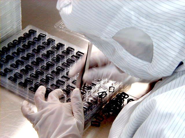 Material making, production with compression or injection machine, peeling the parts from the produced sheets and quality control.