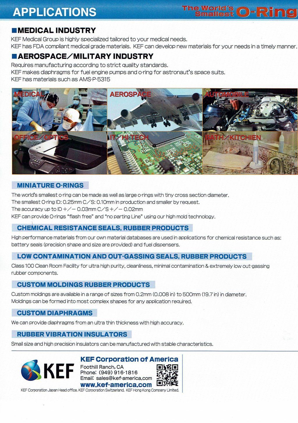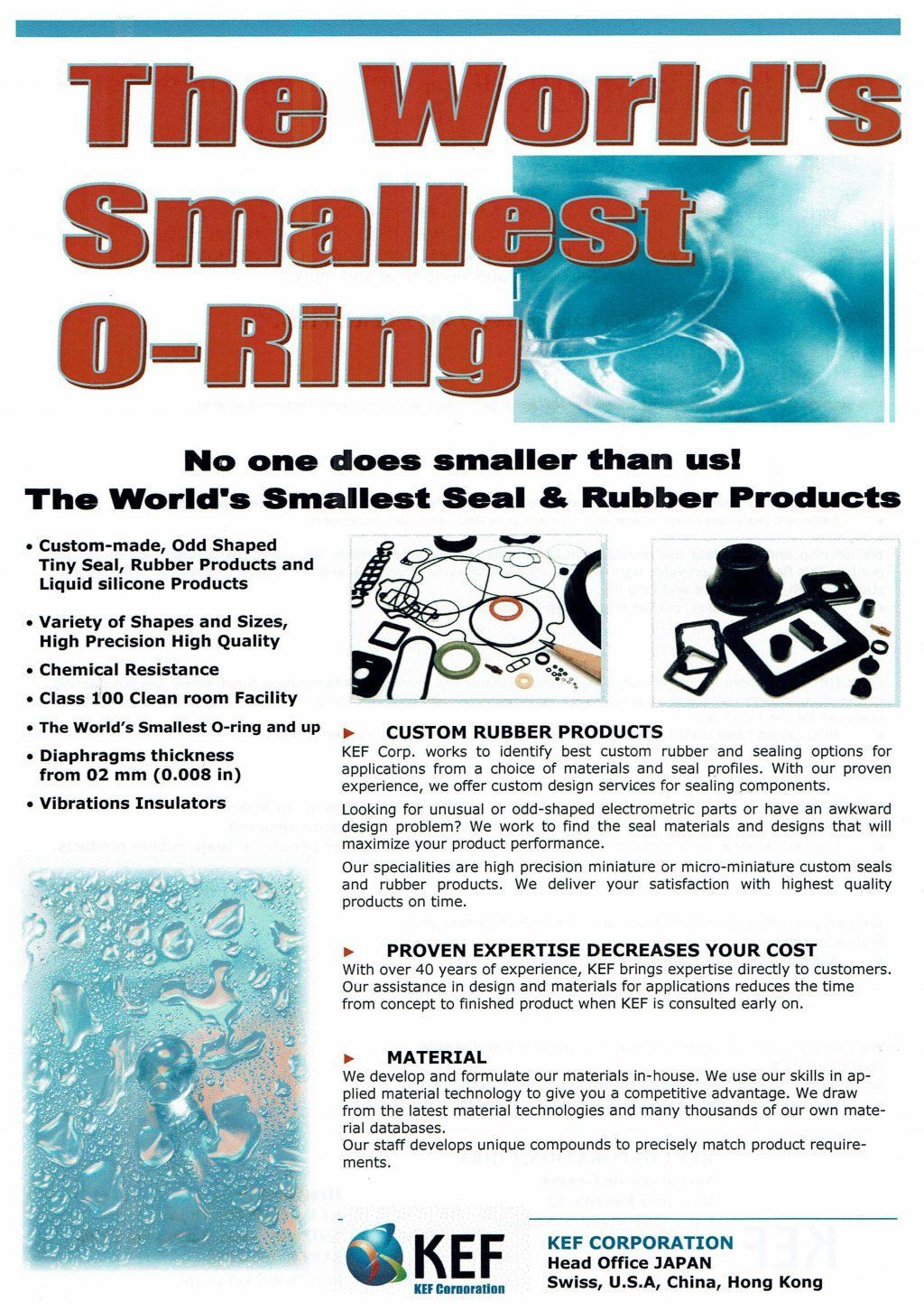 Manufacturer of micro precision o-rings and miniature, custom rubber o-rings. KEF Corporation has developed the world’s smallest O-ring, as well as large o-rings with tiny cross sectional diameters. The smallest o-ring in production is ID: 0.2mm C/S: 0.05mm. In addition, we can provide smaller o-rings by request. For reference, our smallest O-ring developed and tested is ID: 0.05mm C/S: 0.05mm silicone.