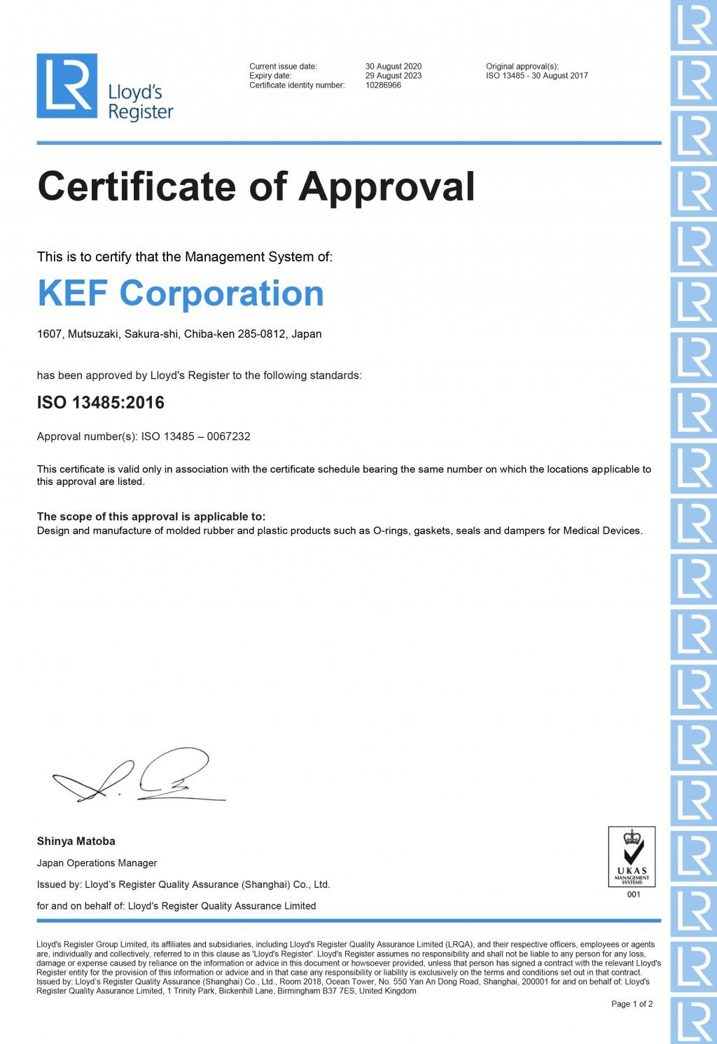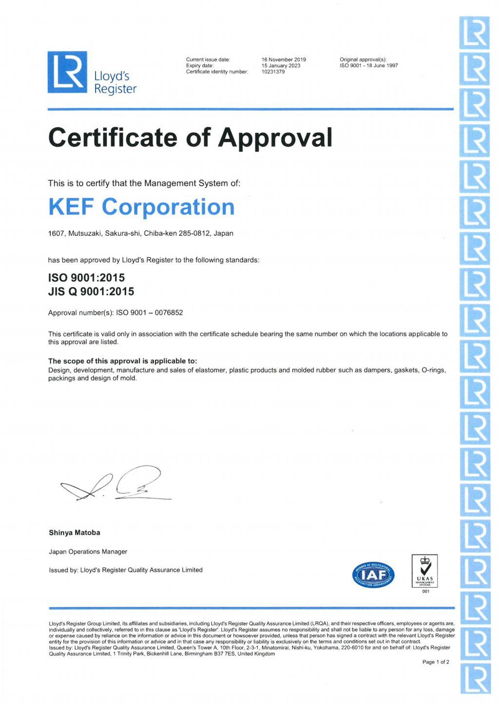 KEF Corporation is certified with ISO9001, ISO14001 and ISO13485 and well focuses on various conformities in EU.